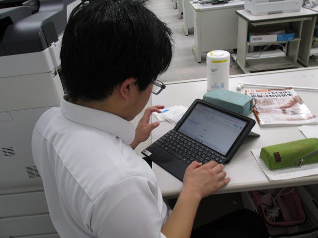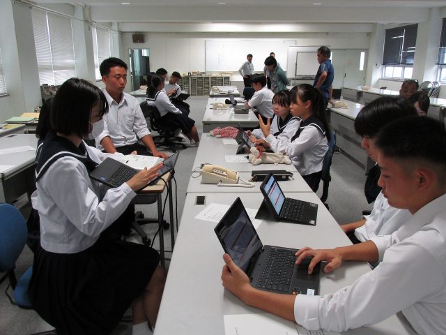 浜商デパート開催に向け、店長・副店長、経理係、広報係、POP係、総務課、企画課に分かれ、それぞれの業務について説明を聞き、作業を開始しました。全校生徒がデパートに向けて、始動しました。