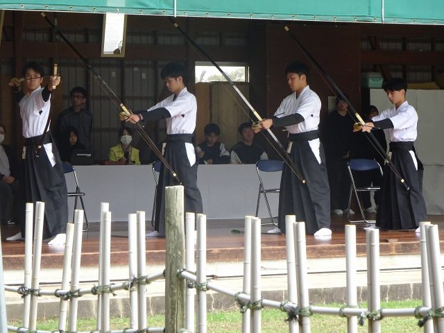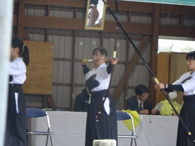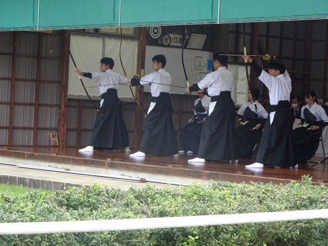 今回は各校から基本的に男女2チームずつの出場で、中国新人大会や全国選抜大会につながる大会でした。そんな大会ならではの重圧や緊張感の中で、女子Aチームが大前の山下をはじめ堂々たる射を行い、1年生だけのチームながら、予選5位という快挙を成し遂げました。その後上位5校による決勝リーグでは、他の強豪を相手に健闘し、1勝3敗で最終的に5位入賞となり、11月に出雲で行われる中国新人大会への出場権を獲得しました。男子、女子Bも予選突破とはなりませんでしたが、それぞれが自分の課題と向き合い善戦しました。今回の経験をそれぞれが生かし、中国新人大会をはじめ今後の活躍につなげてほしいと思います。