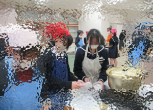 石西防災研究所の伊藤様から避難生活の実態を詳しく教えていただきました。避難所での厳しい現実のこと、治安の悪さなど、テレビやニュースではわからない事実を知り、考えさせられました。実際支援に入った場所で炊き出しとして、石見地域の郷土料理「うずめ飯」を提供したそうです。私たちはこのうずめ飯を防災食として調理し、試食しました。他校の生徒と交流し、良い研修となりました。