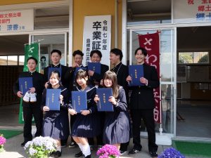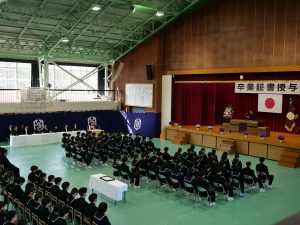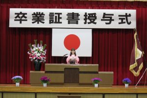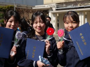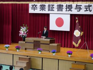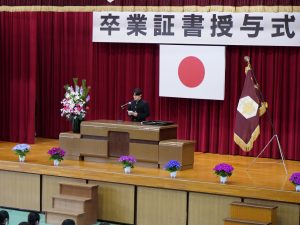 3月1日(日)、好天のもと、第59回卒業証書授与式を厳かに挙行しました。商業科・情報処理科75名の生徒たちは、呼名の返事、校歌斉唱、立ち居振る舞い全てがすばらしく、大きな成長を感じられ、大変、感動的な卒業式となりました。
